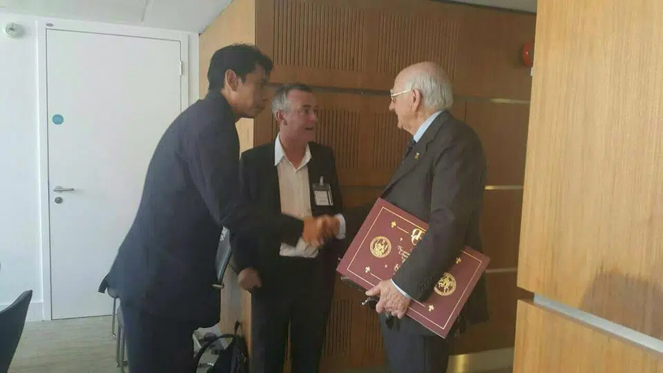 May 21, 2015, After the walk Sir Robert Milton Worcenster received an award of a silver plate presented by the CEO of Magna Carta Law Office Mr.Chalermwat Wimuktayon as a gesture from Thailand and to further strengthen relations between the UK and Thailand. The award ceremony was held at the Guild Hall London.