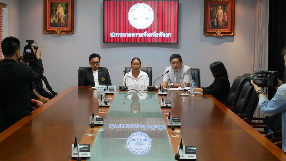 There were Mr. Chalermwat Wimuktayon, Chairman of the Pattaya Lawyers Council, and CEO of Magna Carta Law Firm, Mr. Pantawat Pimsakul, Secretary-General of the Pattaya Lawyers Council, and Ms. Wilaksikulsarawut. The member of the Lawyer Council of Legal Aid Department has announced the progress of the case for the compensation from the accused Mr. Panya Yingdang (Sia Uan), along with Miss Wanpen Na Muangrak, the mother of Miss Paveena Na Muangrak, who deceased, and the media attended the press conference.