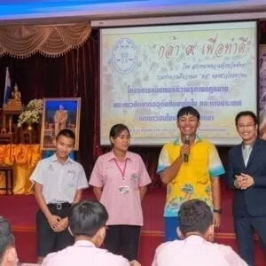 Mr. Chalermwat Wimuktayon (Chairman of the Pattaya Lawyer Council),together with Mr. Pandavat Pimsakul(Secretary General of Pattaya Lawyers Council), Mr. Chanyut Yungpreda(Vice Chairman of Pattaya Lawyers Council), Ms. Anchalee Makaphum(Officer of the Court of Justice, Chonburi), Mrs. Machima Borisut (Attorney General, Office of the Attorney General), Mrs. Patcharee Noithi(Director of Pattaya City School 11), The Committee of Pattaya Lawyers Council and the legal team from the Magna Carta Law Office joined the activity.